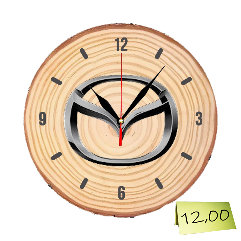 Настолен часовник от дървесен отрязък с гравирано логото на Мазда.