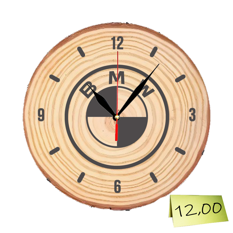 Настолен часовник от дървесен отрязък с гравирано логото на БМВ.