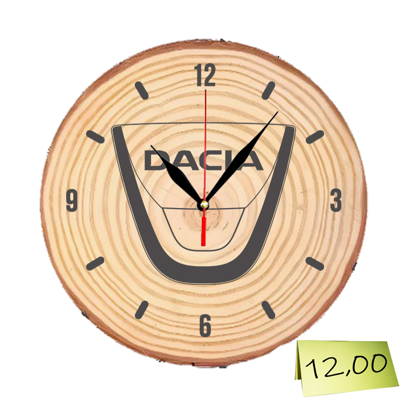Настолен часовник от дървесен отрязък с гравирано логото на Дачиа.