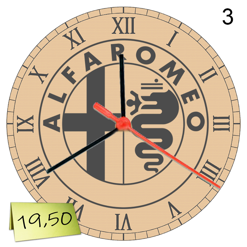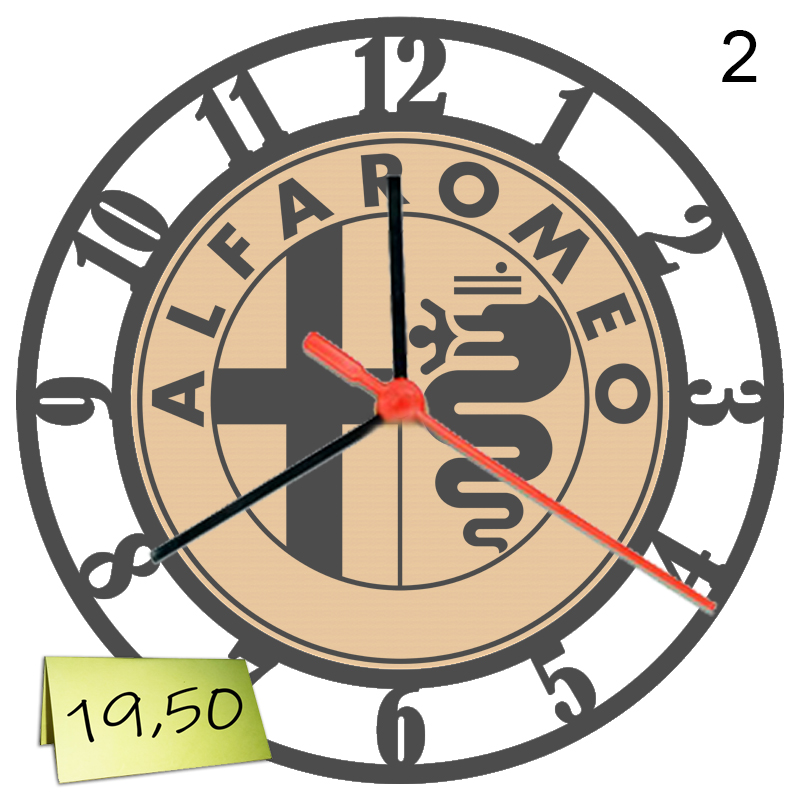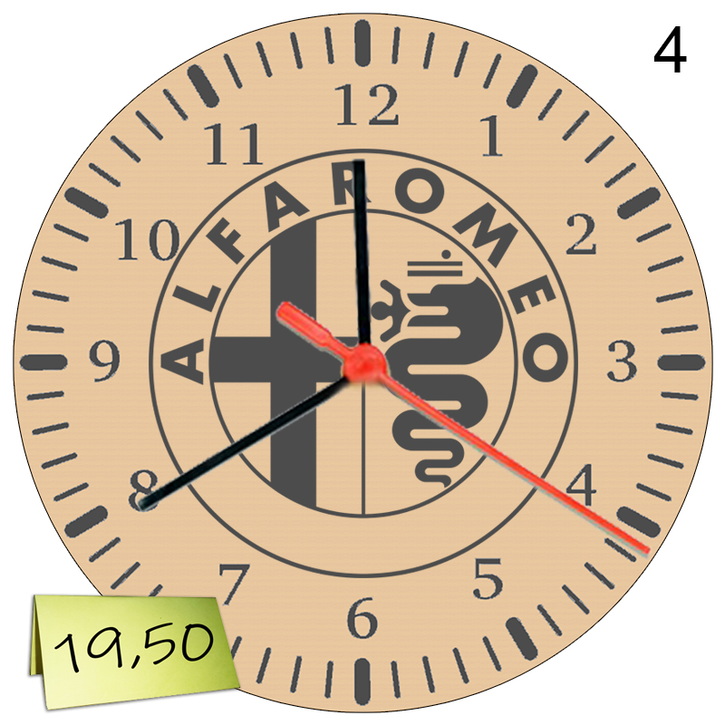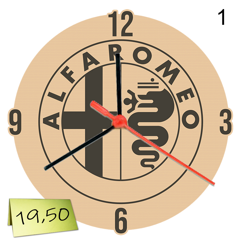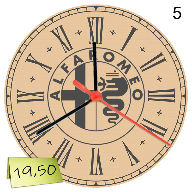 Стенен часовник с гравирана емблемата на Алфа Ромео в пет варианта.
