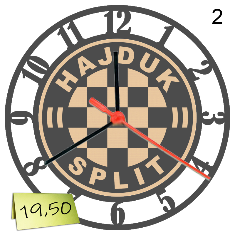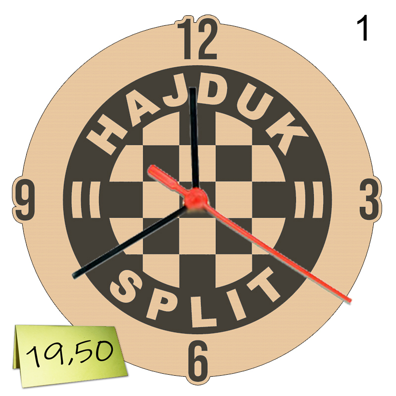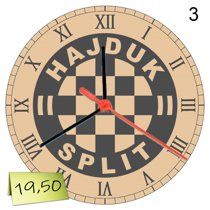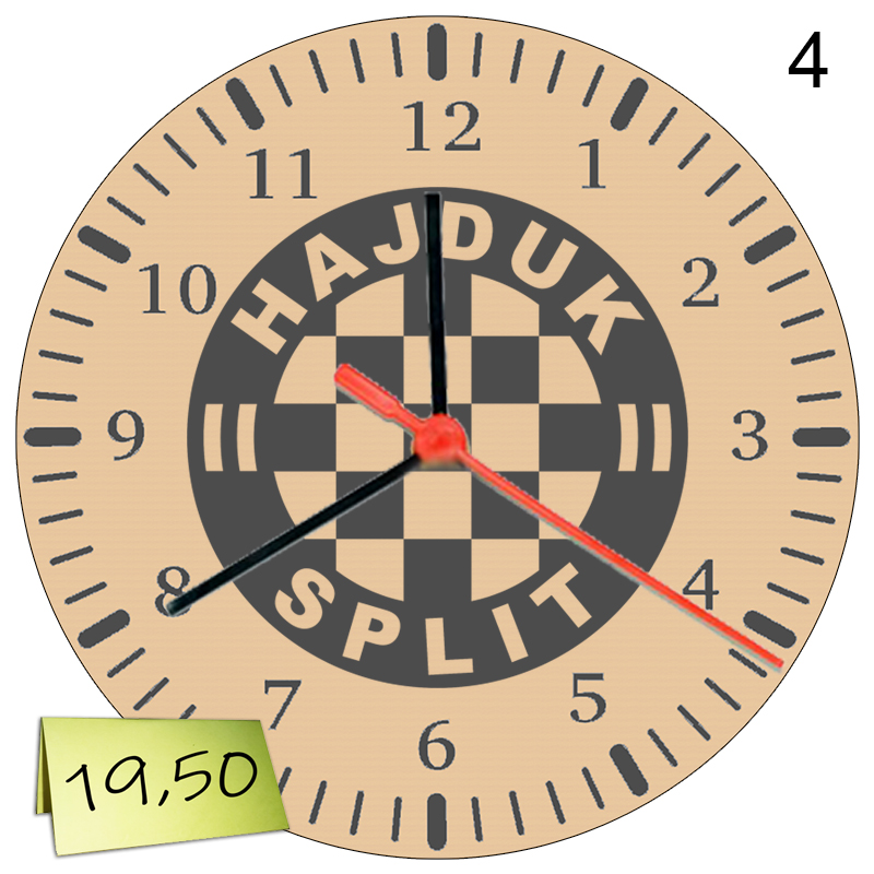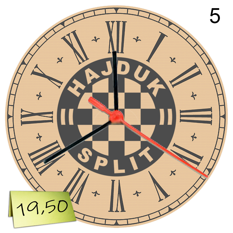 Стенен часовник с гравирана емблемата на Хайдук Сплит в пет варианта.